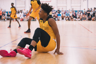 #1 8th Grader Mikey Williams of the Compton Magic puts on a show at the Adidas Gauntlet Series Tournament at the Momentous Sports Center in Irvine, CA.